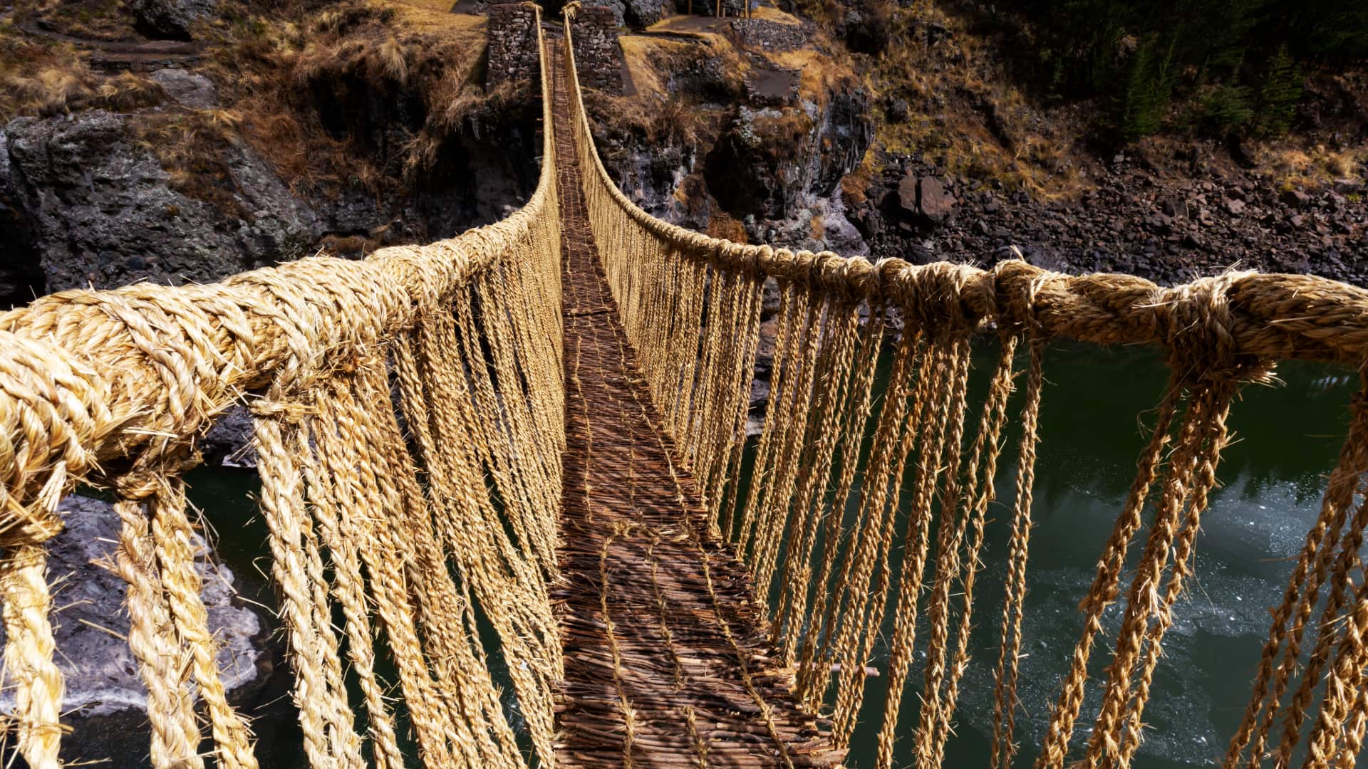 - 10:30 hrs: Arrival at Q’eswachaka, the Inca suspension bridge over the Apurímac River, woven annually by local communities. Free time to cross the bridge, take photos, and hear the stories and traditions surrounding it.